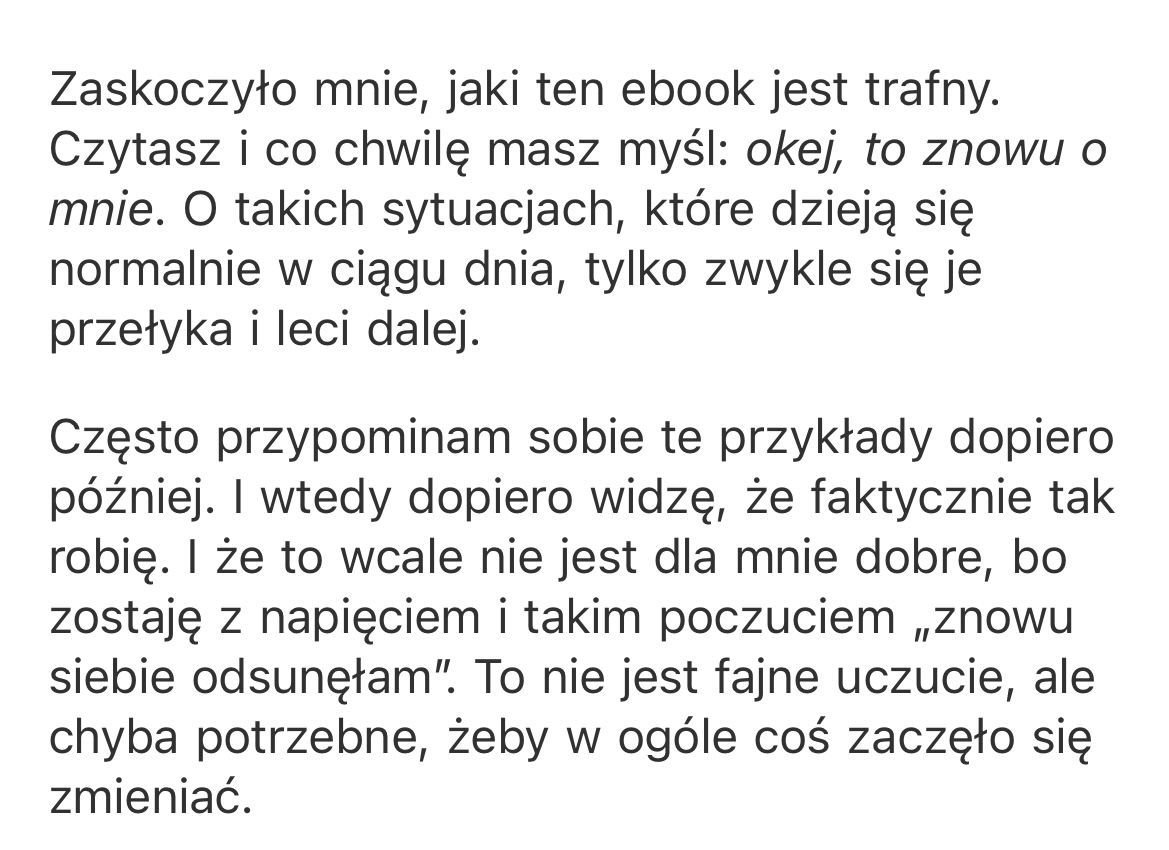 I właśnie dlatego nie dostajesz kolejnej teorii - tylko coś, co działa w tej jednej sekundzie reakcji, kiedy milkniesz, odkładasz rozmowę albo zgadzasz się wbrew sobie.