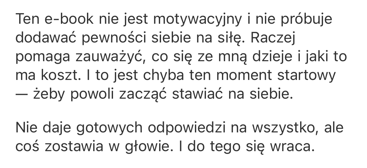 Za chwilę znowu wrócisz do maili i presji dnia. Możesz kupić ten Ebook teraz i mieć go od razu jako wsparcie.