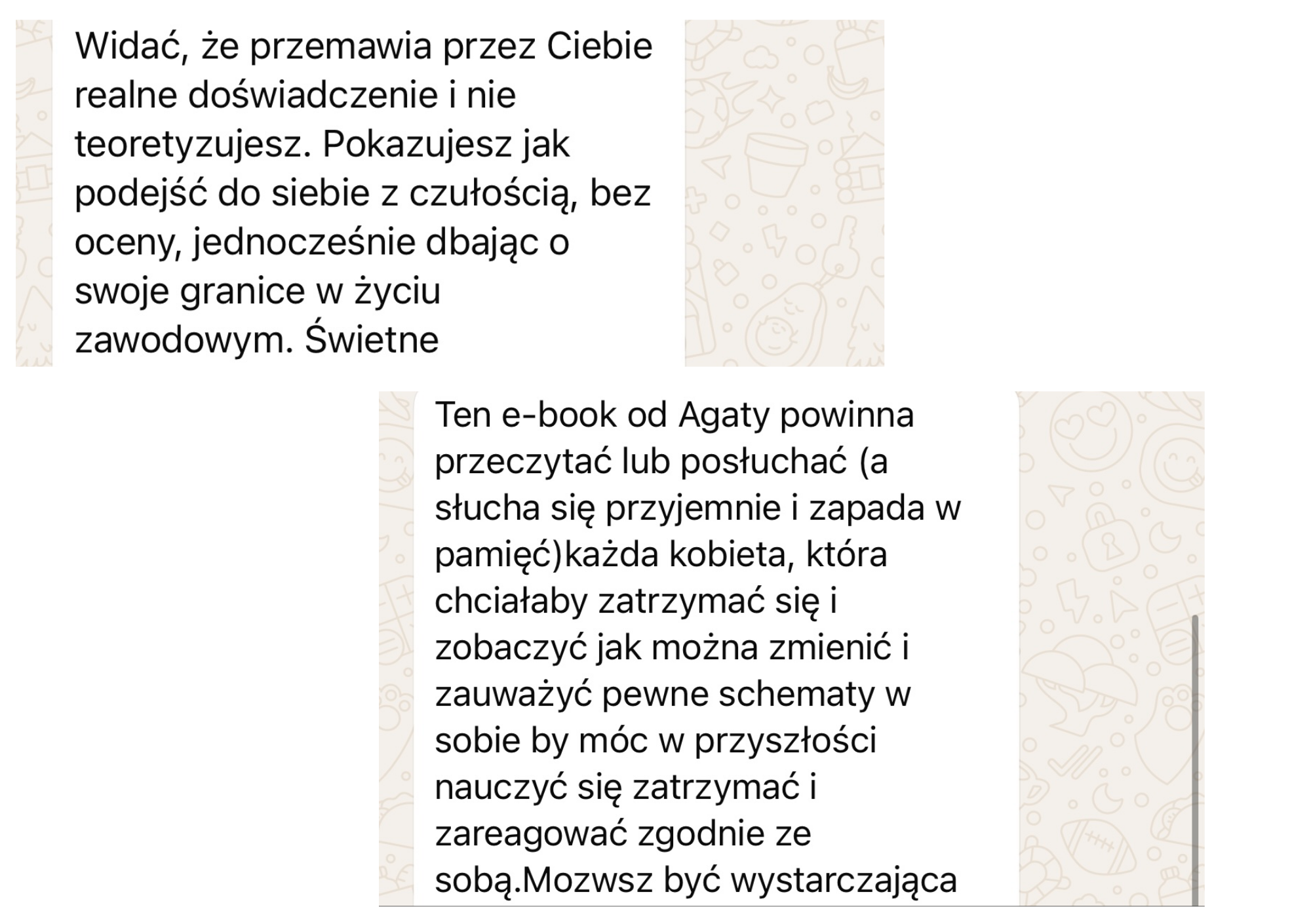Budowałam swoją wartość na fasadzie z betonu. Na zewnątrz: Agata, która wszystko ogarnie, zawsze szybka, zawsze silna, bez prawa do błędu. A w środku? Paniczny lęk, że ktoś przejrzy tę grę i pomyśli o mnie cokolwiek negatywnego. Stałam się niewolnicą cudzych scenariuszy. Za wszelką cenę nie chciałam zachować się inaczej, niż ode mnie oczekiwano. Łatwiej było mi dźwigać nadludzki ciężar cudzych zadań i brać na siebie odpowiedzialność za problemy innych, niż znieść myśl, że mogłabym kogoś rozczarować choćby jednym słowem czy gestem.”